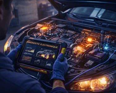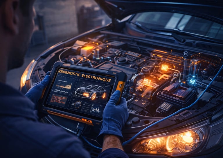 Le diagnostic électronique permet d’analyser en profondeur les systèmes du véhicule grâce à des outils informatiques de haute précision.